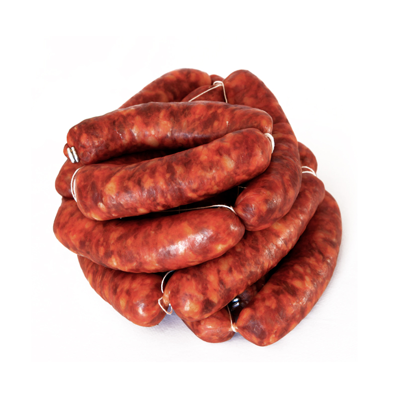 Chorizo artesanal elaborado por la familia Llopis de La Cabanenca, siguiendo métodos tradicionales. Se prepara únicamente con carne de cerdo, sal marina, pimentón y especias, sin conservantes ni aditivos. Cada unidad conserva todo el sabor auténtico y la textura firme de un producto natural. Disponible en prácticos paquetes de ocho unidades.