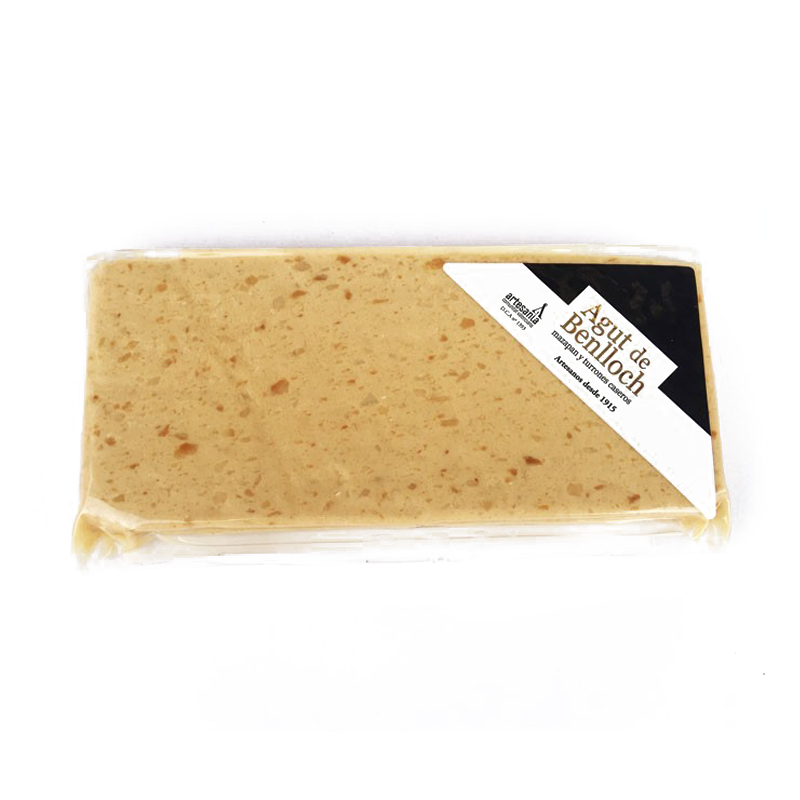 Turrón de Jijona blando elaborado de forma artesanal y familiar en Benlloch, siguiendo más de un siglo de tradición turronera. Con una masa suave y homogénea obtenida del molido pausado de almendra Marcona de la Plana Alta, miel y azúcar, este turrón se distingue por su sabor profundamente almendrado y textura delicada que se funde en el paladar. Cada pieza refleja el cuidado tradicional y los ingredientes naturales que caracterizan los turrones de esta familia. Sin conservantes ni colorantes.